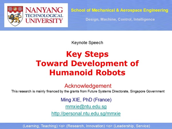 My research achievements have resulted in a) one published book in robotics which links perception to action, b) one published book in artificial intelligence which establishes the true foundation of AI, c) one SCI/SCIE-indexed journal which is historically dedicated to humanoid robotics (www.editorialmanager.com/ijhr), d) one national society (www.rss.org.sg) which is dedicated to promoting robotics in Singapore and beyond.